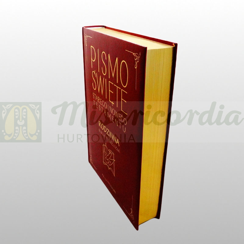 Biblia Rodzinna w skórze ekologicznej ze złoceniami i złoconymi brzegami. To bardzo ekskluzywne wydanie tego cieszącego się dużym uznaniem wydania Biblii. Świetnie nadaje się na piękny prezent z okazji różnych uroczystości rodzinnych.