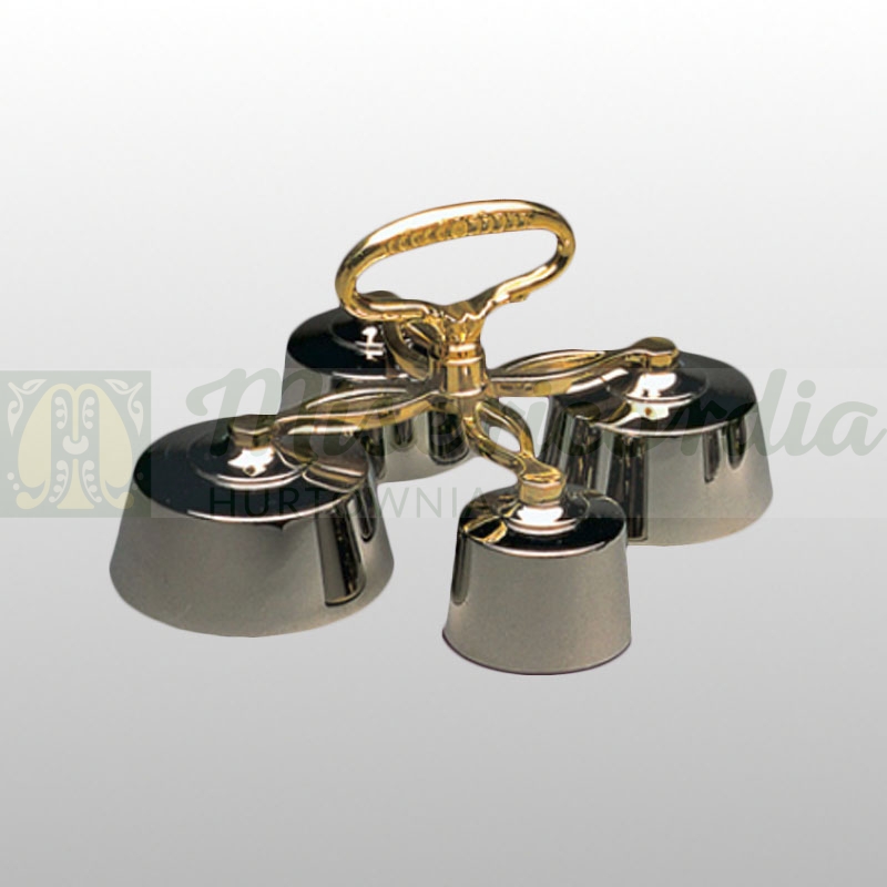 Dzwonek liturgiczny mosiężny, poczwórny, niklowany.