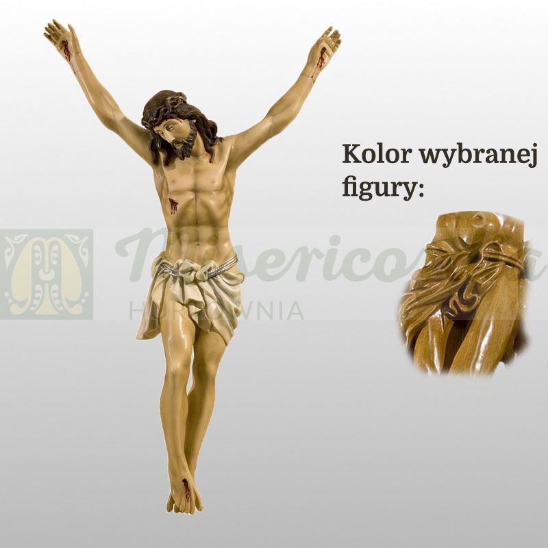 Figura żywiczna Korpus Chrystusa o wysokości 100 cm w kolorze drewna.