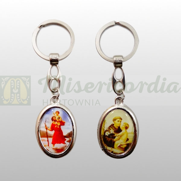 Brelok owalny, dwustronny - Święty Krzysztof/Święty Antoni.