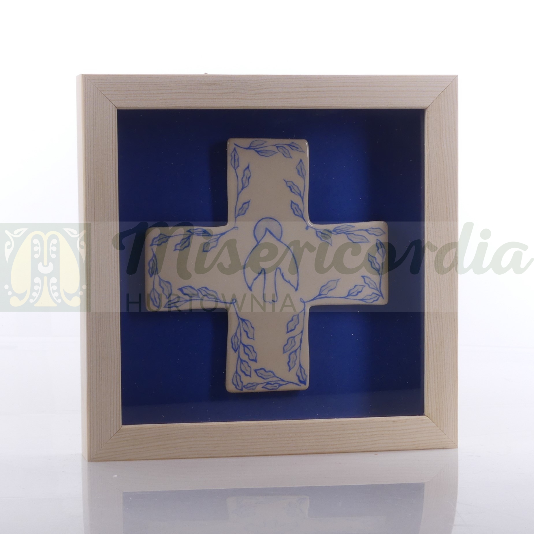 KRZYŻ CERAMICZNY W RAMCE 22x22cm JASNA RAMKA - SOSNA