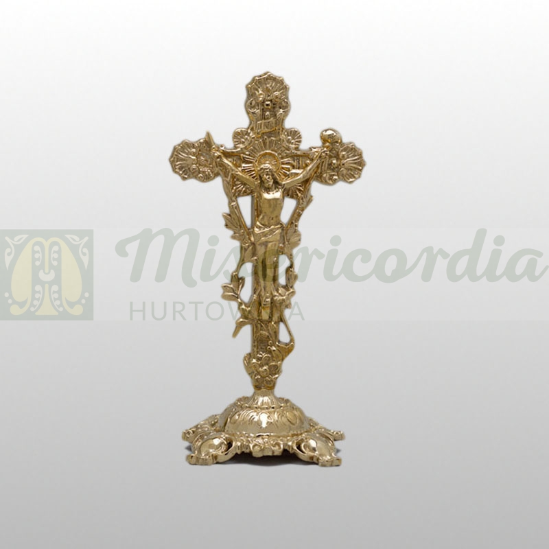 Krzyż mosiężny, stojący.