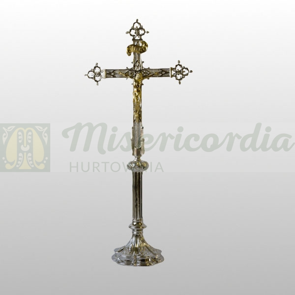 Krzyż stojący mosiężny niklowany 76 cm (52261)