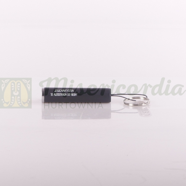 Poręczna, lekka i zawsze pod ręką! Czarna latarka-brelok to praktyczny gadżet z głębokim przesłaniem. Na obudowie znajduje się grawer: