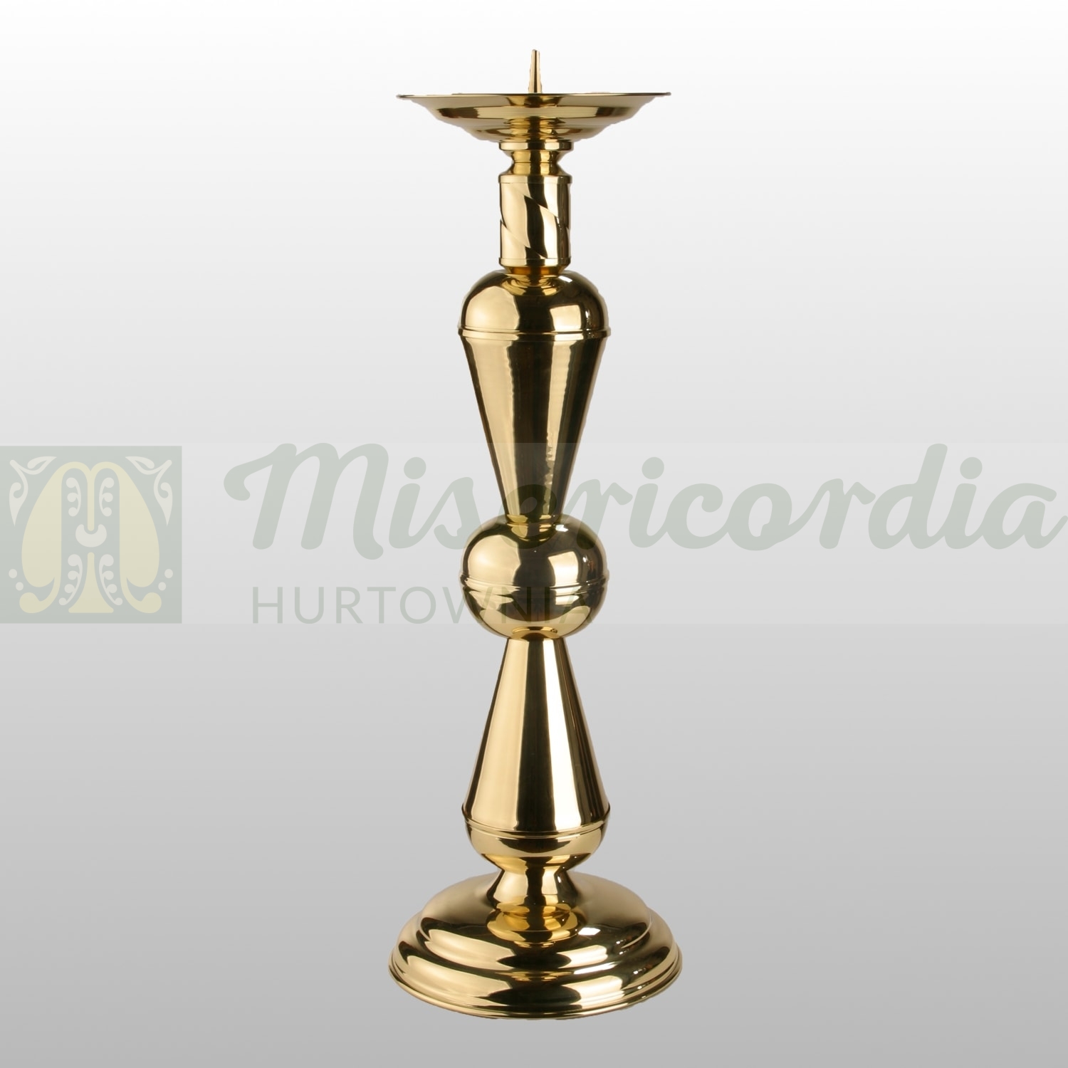 LIchtarz z polerowanego mosiądzu na wysoki połysk i zabezpieczane specjalnym verniksem. Wysokość 51cm.W podstawie zamontowany jest obciążnik zapewniający stabilność lichtarza.