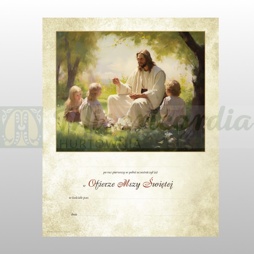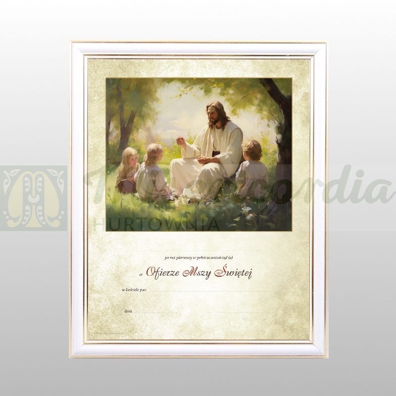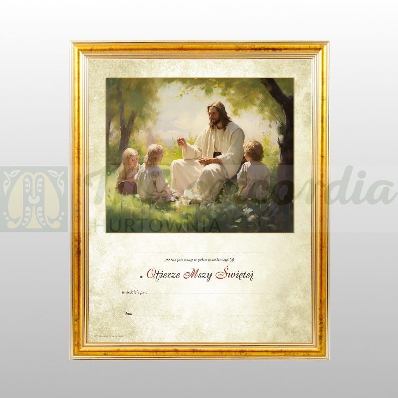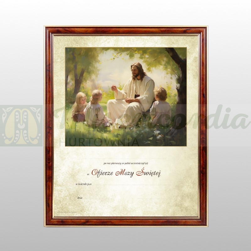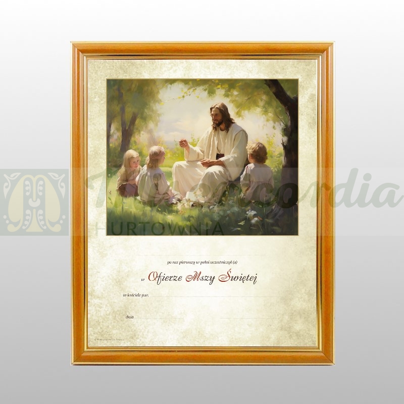 Obrazek komunijny z możliwością kupienia wraz z ramką, wypisaniem komputerowym, podpisem katechety i skanem parafii (do wyboru w panelu poniżej ceny).