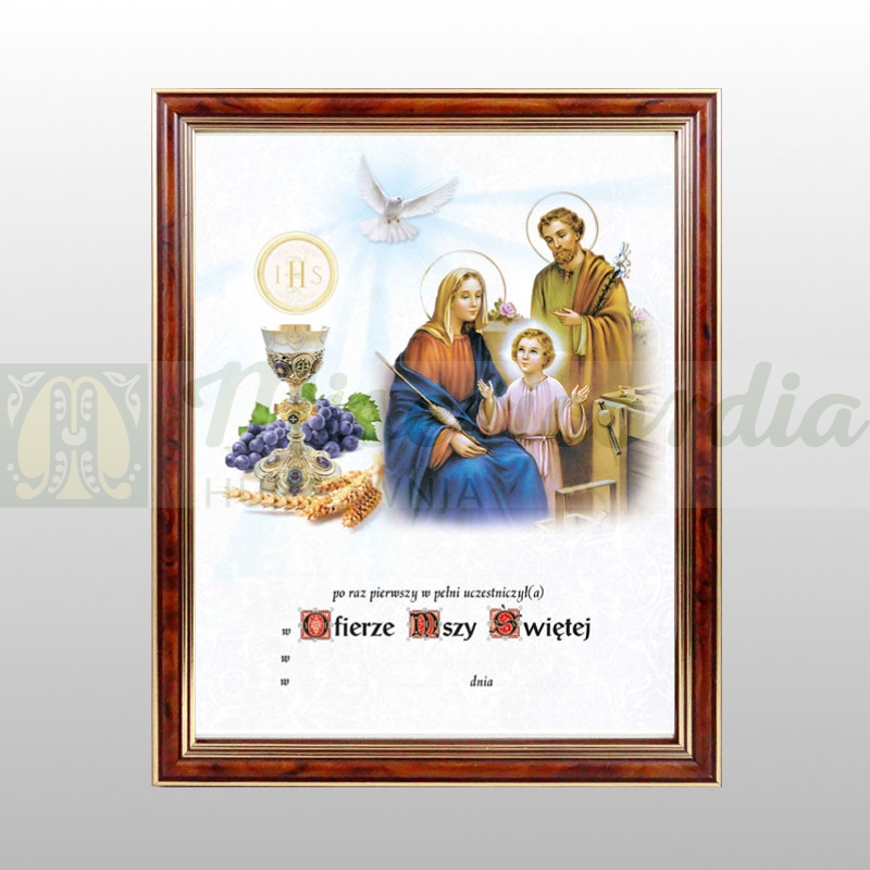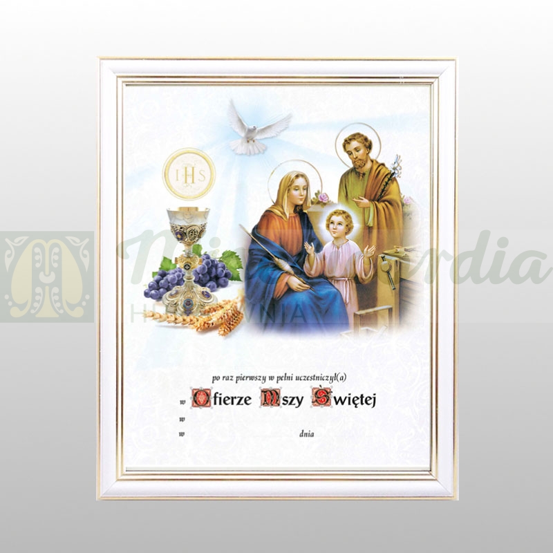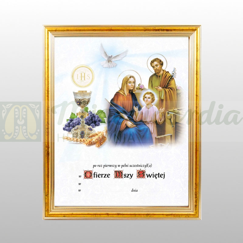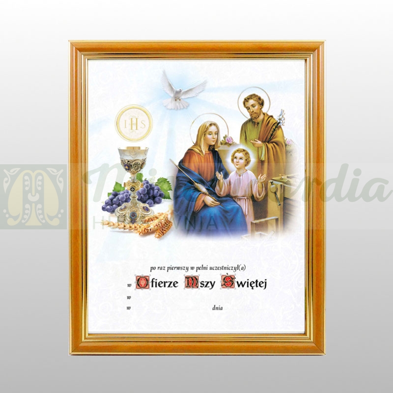 Obrazek komunijny z możliwością kupienia wraz z ramką, wypisaniem komputerowym, podpisem katechety i skanem parafii (do wyboru w panelu poniżej ceny).
