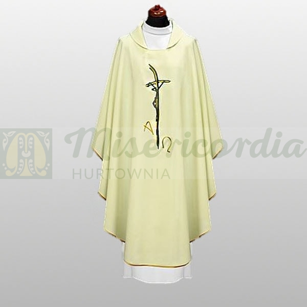 Lekki i łatwy w utrzymaniu ornat haftowany motywem krzyża. Ornat uszyty w stylu gotyckim ze stułą wewnętrzną.