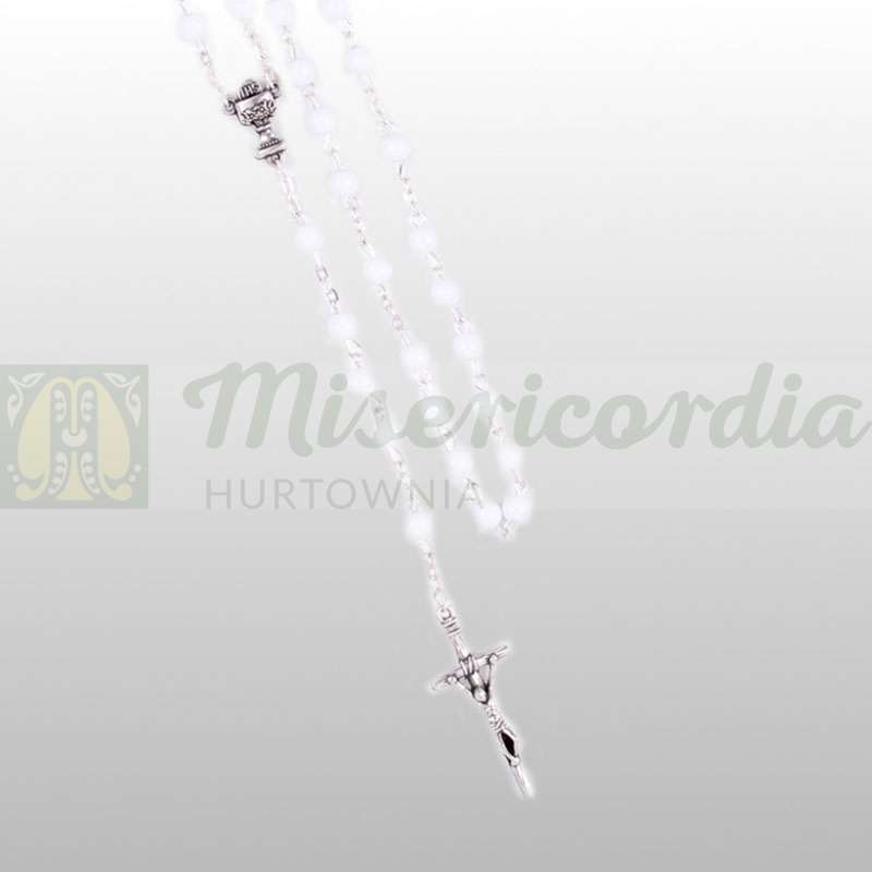 Różaniec mała kulka biała, łącznik kielich