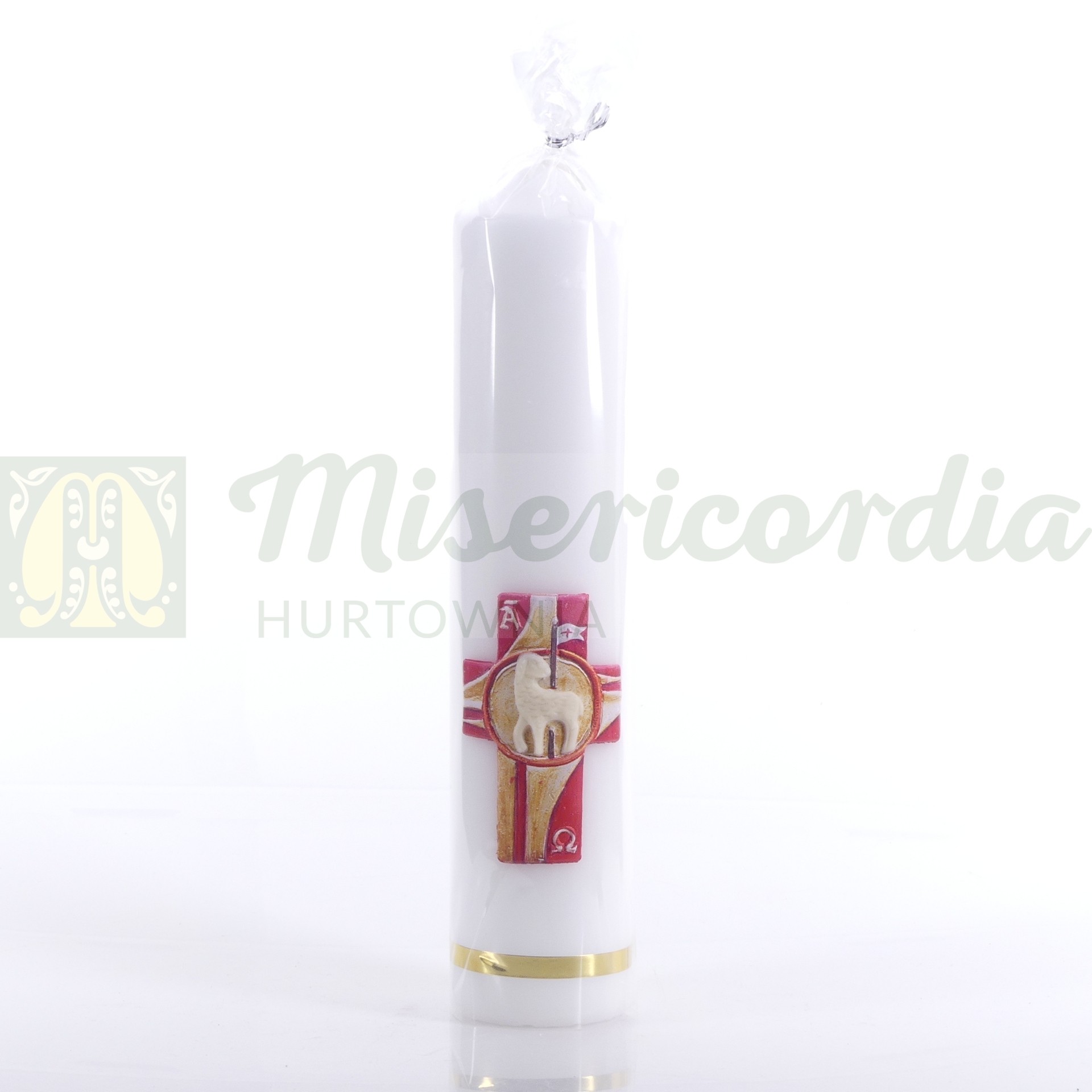 świeca paschalna 0.85 baranek na krzyżu, biała - bez daty