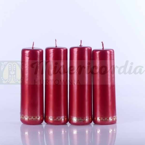 świece adw.18/6 czerwone (4szt.) perłowe zł.paski