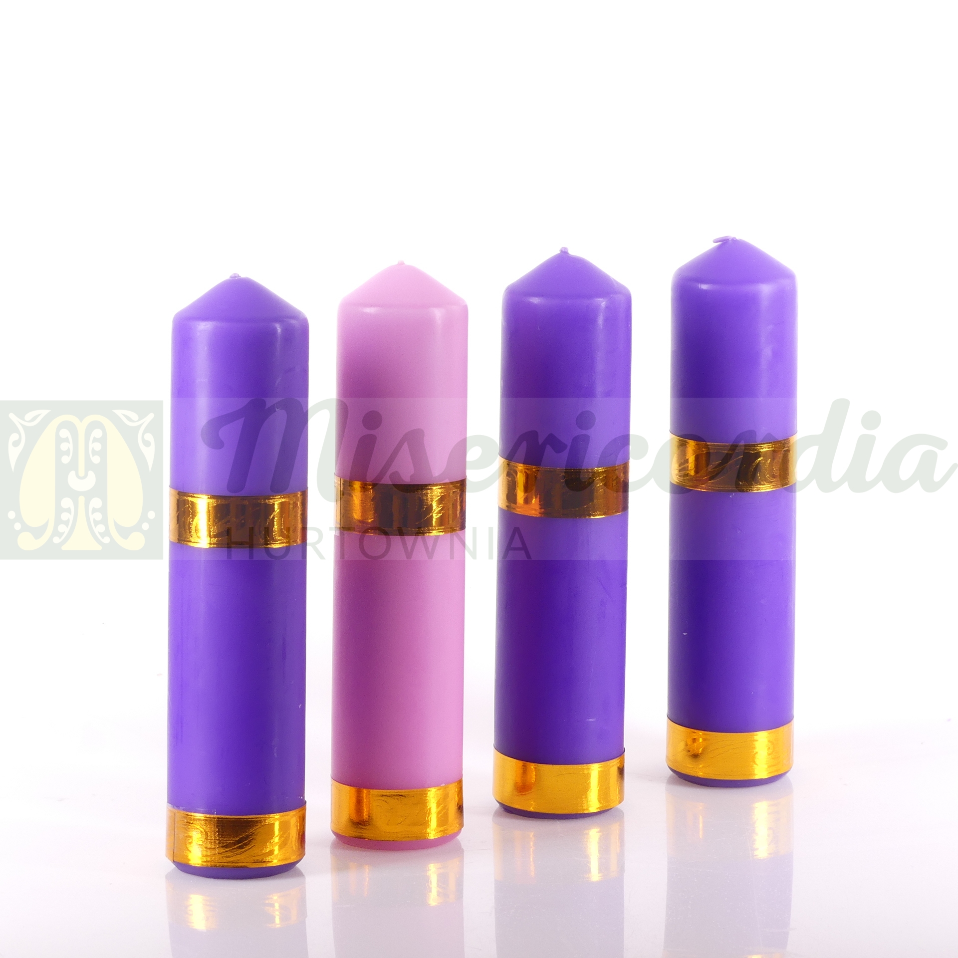 Świece Adwentowe, 3 fioletowe, 1 różowa.